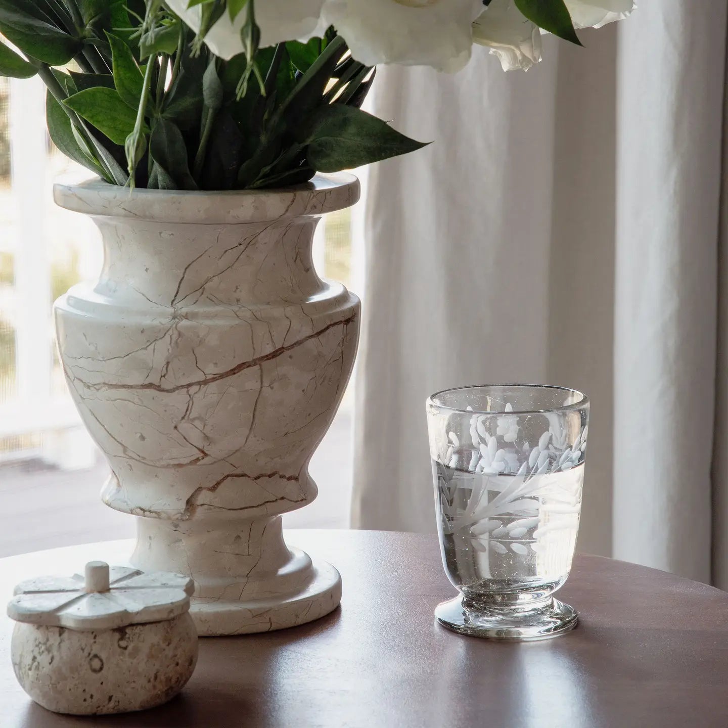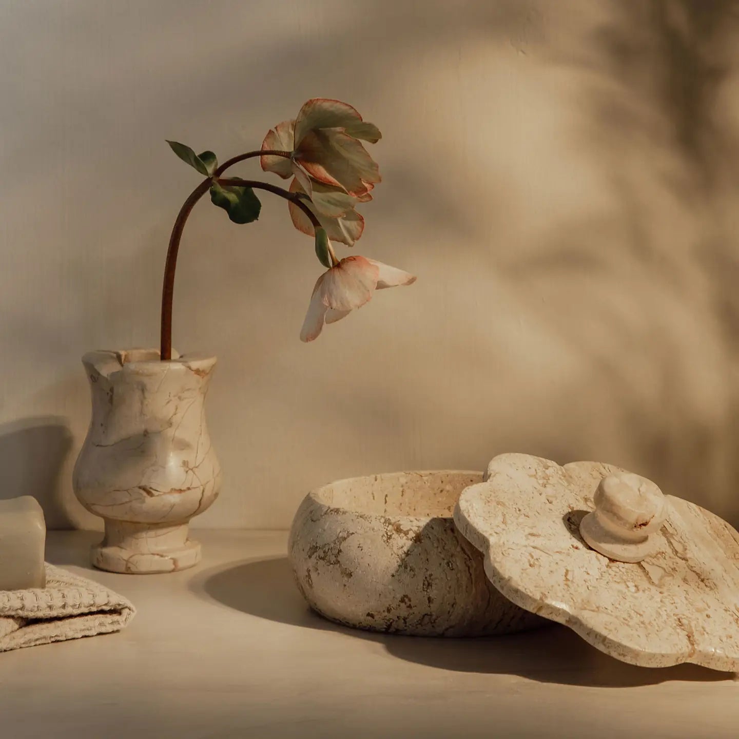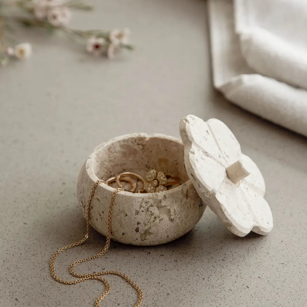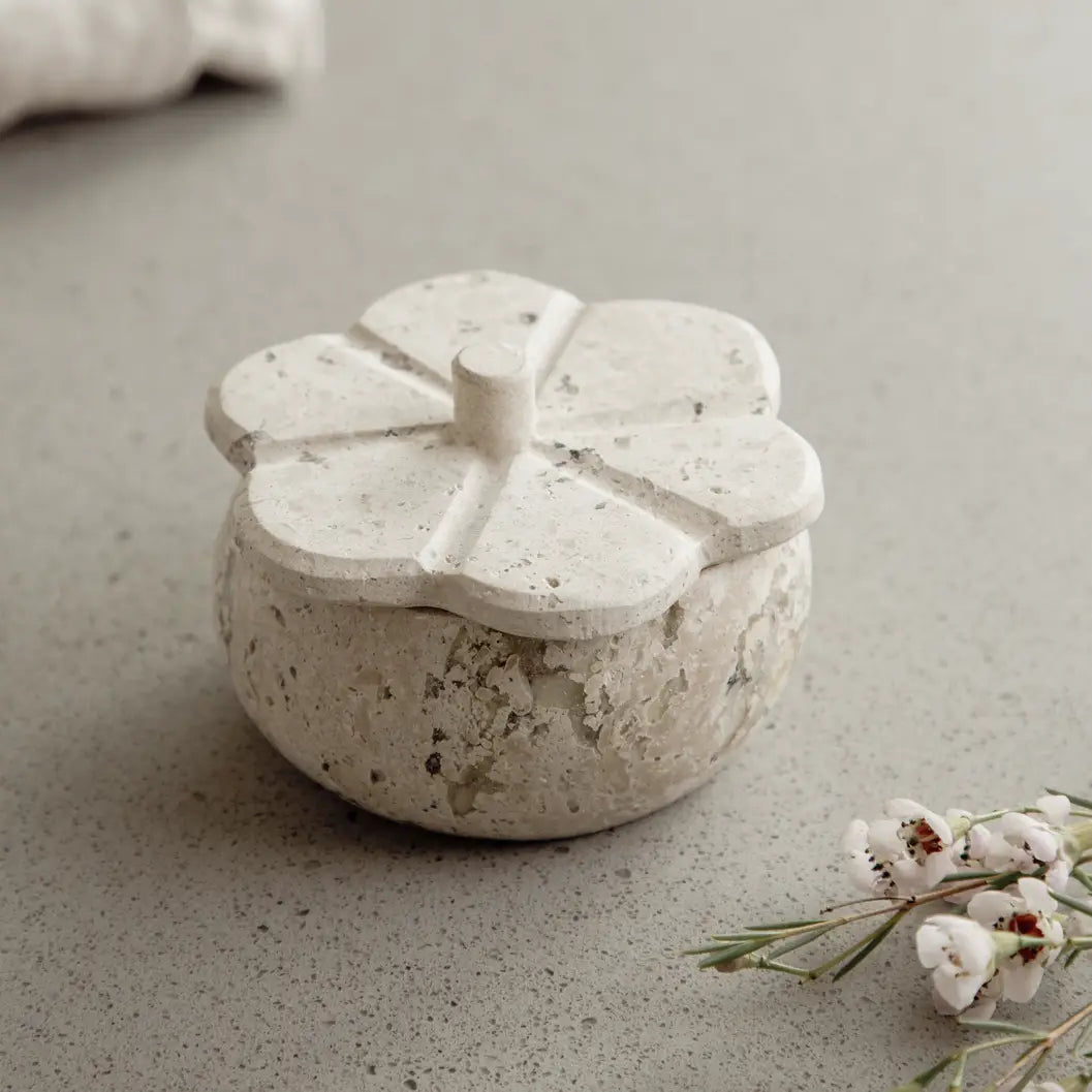 Ruffled Travertine Lidded Trinket Dish | Bone