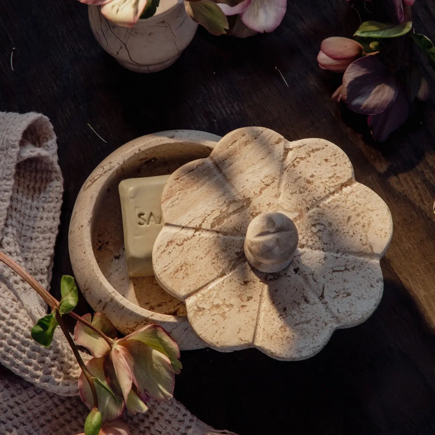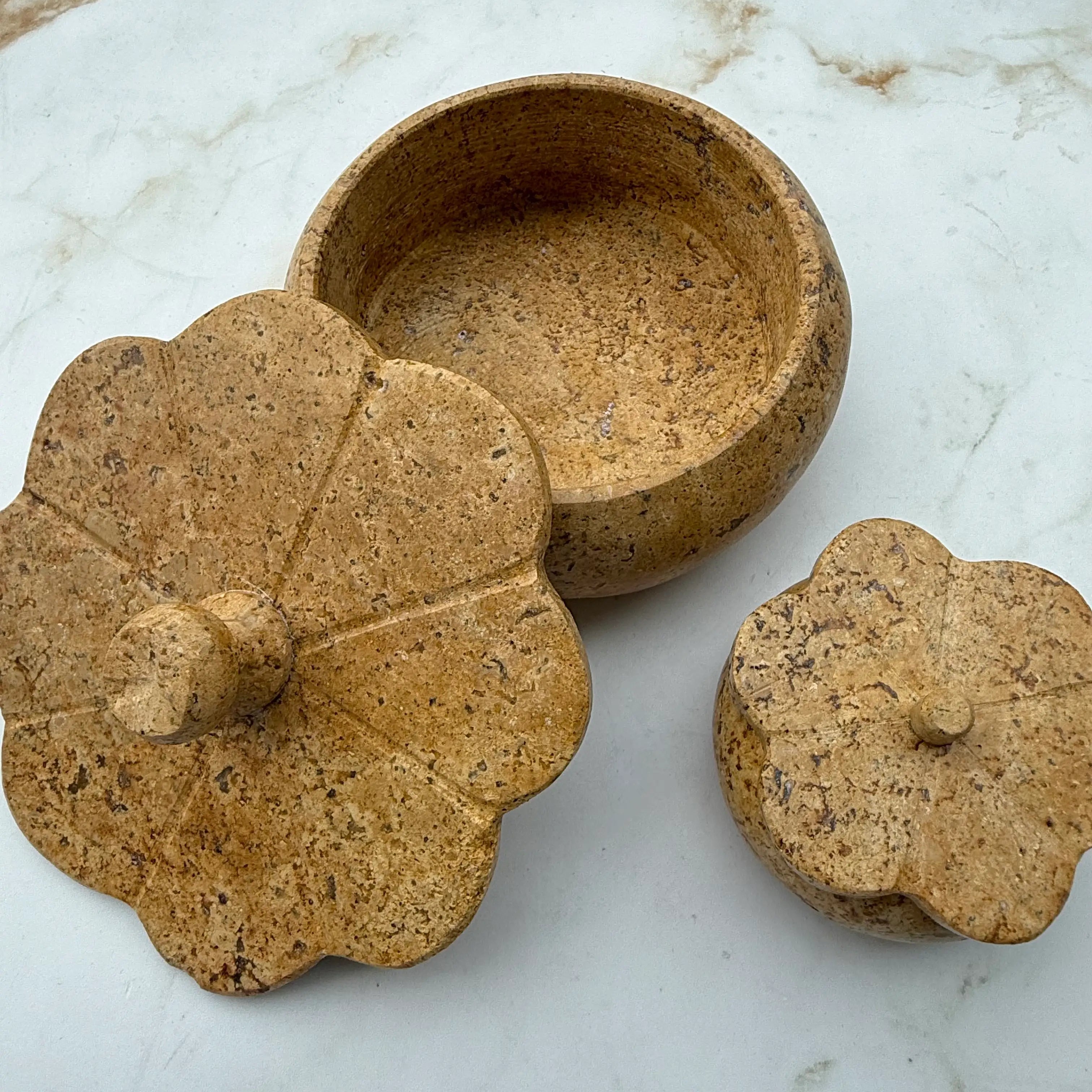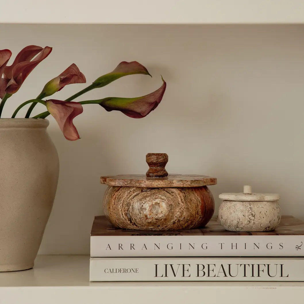 Ruffled Travertine Lidded Trinket Dish | Earth