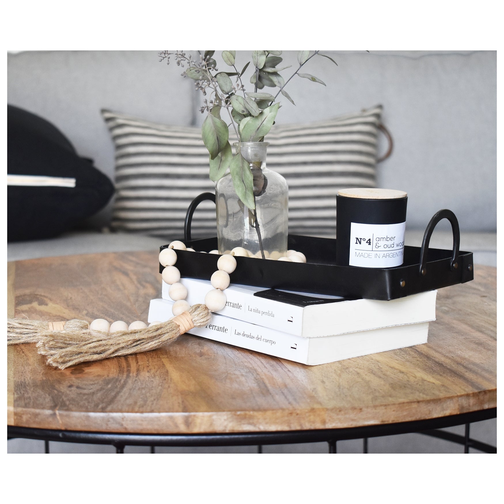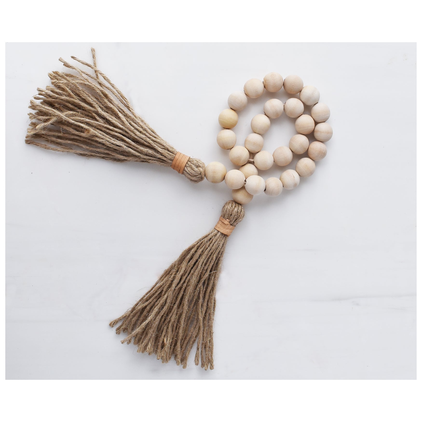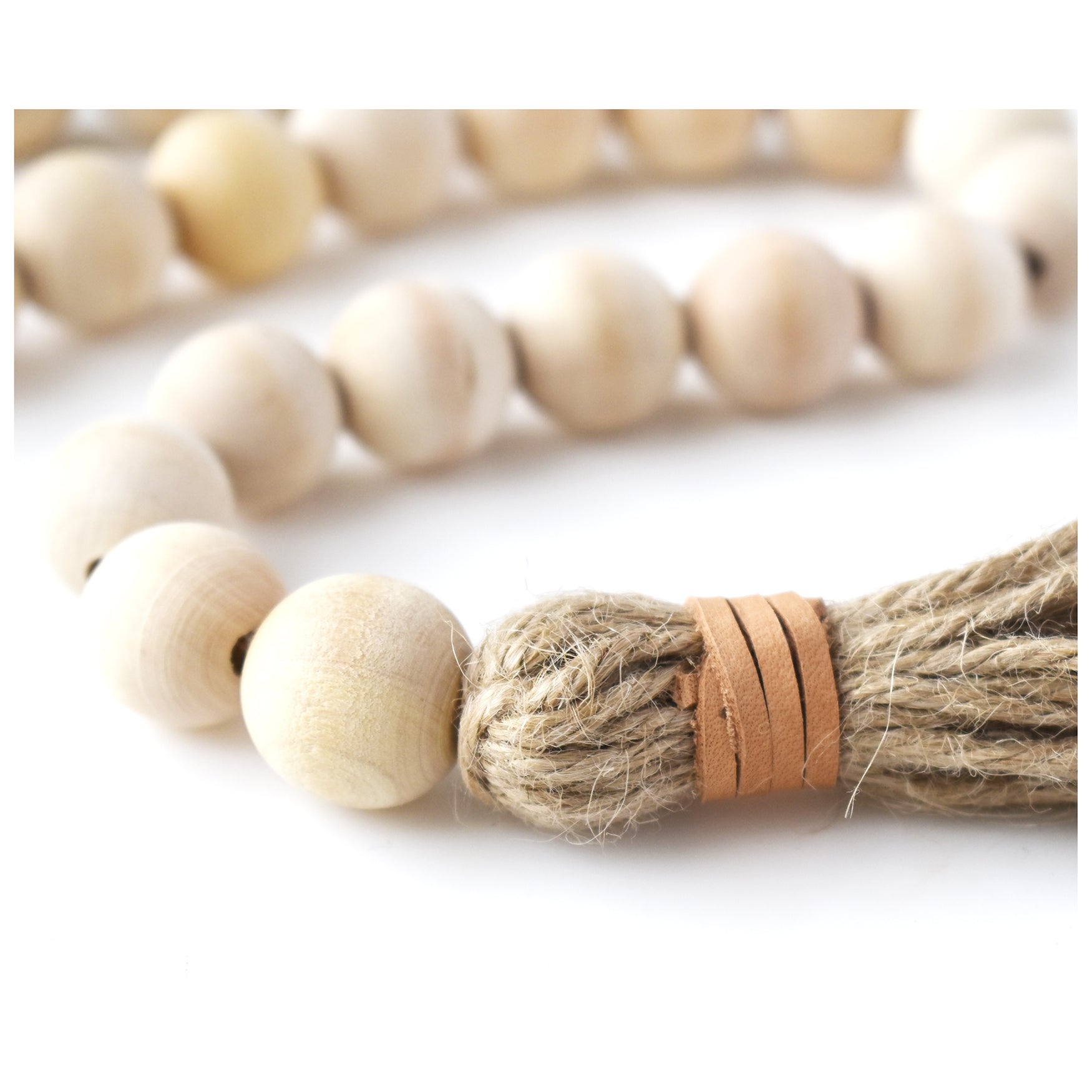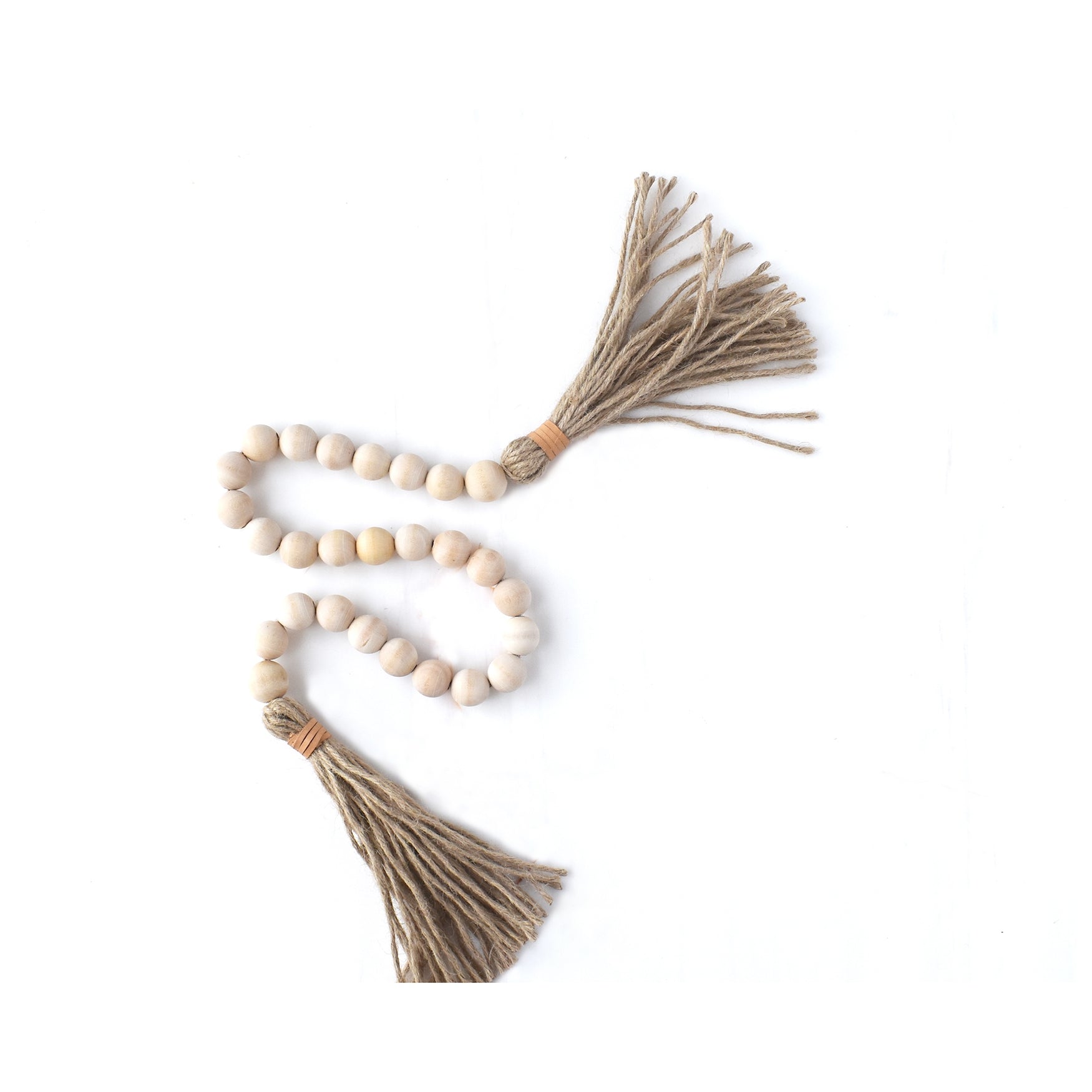 Natural Wood Beaded Garland | Jute & Leather